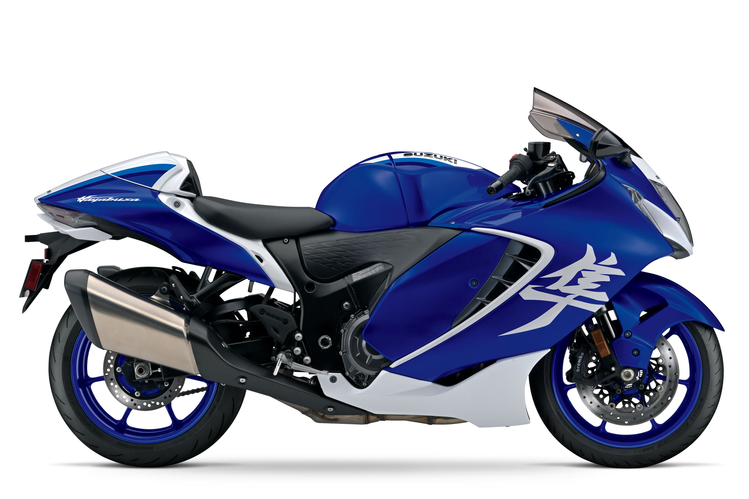 As jantes em azul, os protetores térmicos anodizados e a combinação exclusiva de cores conferem à Hayabusa um visual ainda mais marcante.