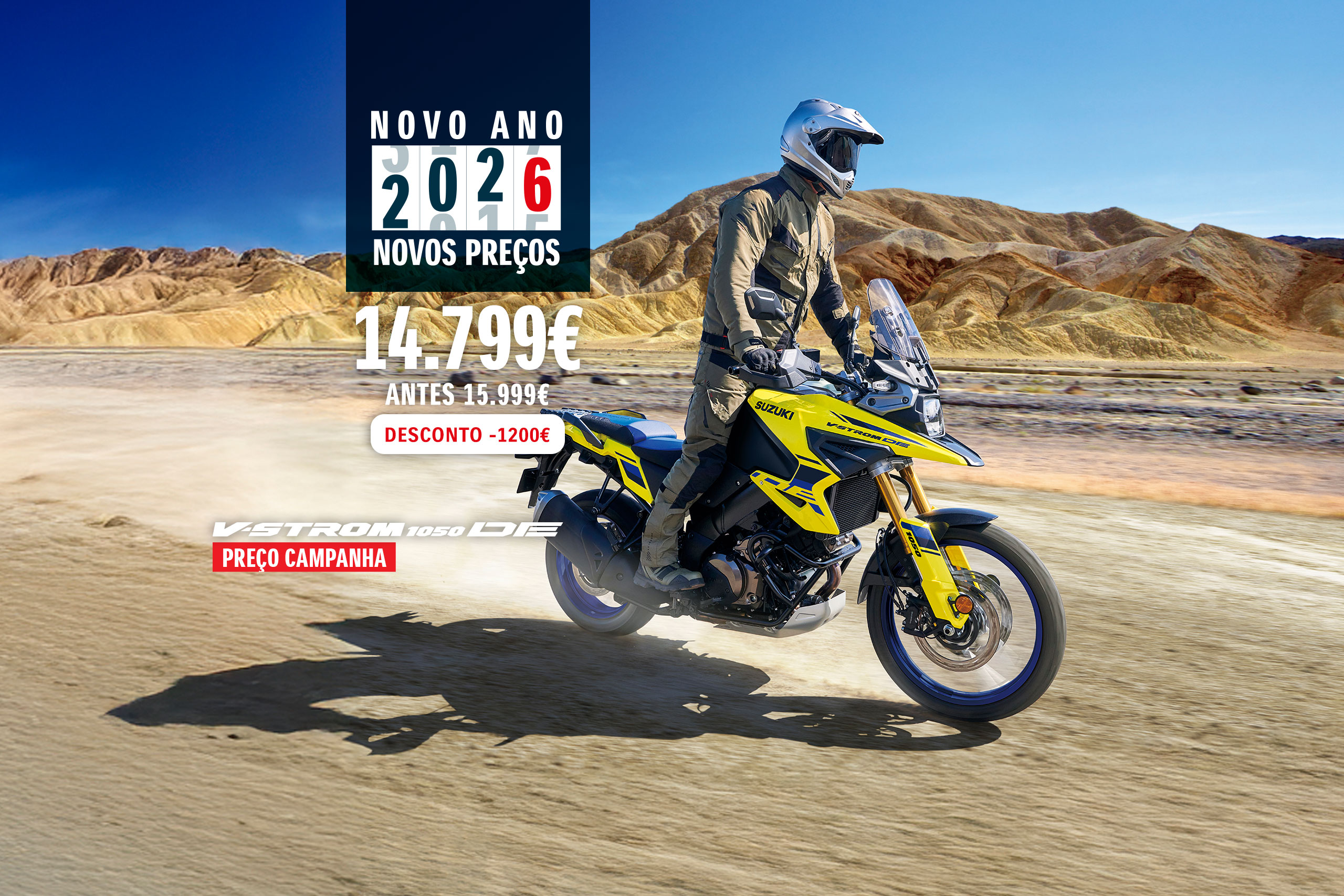 Campanha válida até 30 de junho de 2026, limitada ao stock existente no concessionário aderente e no importador. O Preço inclui IVA à taxa legal em vigor e ISV. Despesas de Legalização e Transporte não incluídas. Não acumulável com outras campanhas em vigor. As imagens e descrições não são contratuais, podendo ocorrer variações de cor, versões ou equipamento, acessórios e extras. Para mais informações contactar o concessionário oficial Suzuki.